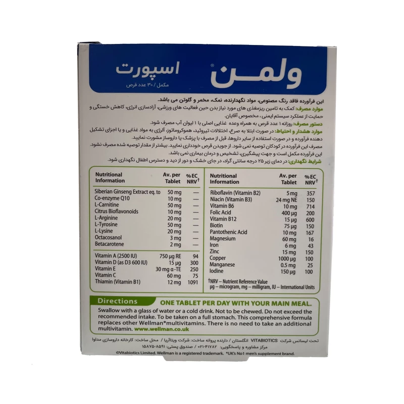 Wellman Sport محصولی تخصصی از برند معتبر انگلیسی Vitabiotics است که برای مردان فعال و ورزشکار طراحی شده است. این مکمل ترکیبی از ۲۷ ریزمغذی ضروری شامل ویتامینها، مواد معدنی، آمینواسیدها، کوآنزیم Q10 و ال-کارنیتین را داراست که برای حمایت از عملکرد عضلات، افزایش سطح انرژی، کاهش خستگی و بهبود ریکاوری بدن بعد از فعالیت ورزشی فرموله شده است.