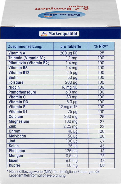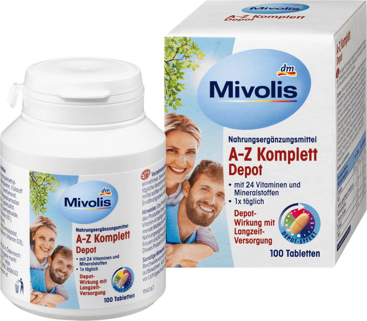 قرص مولتی ویتامین A-Z کامپلیت Mivolis حاوی تمامی ویتامین ها و مواد موردنیاز بدن در طول روز است و با تامین آن ها به شکل Depot می تواند در طول روز به سلامت عمومی بدن کمک بسزایی کند.