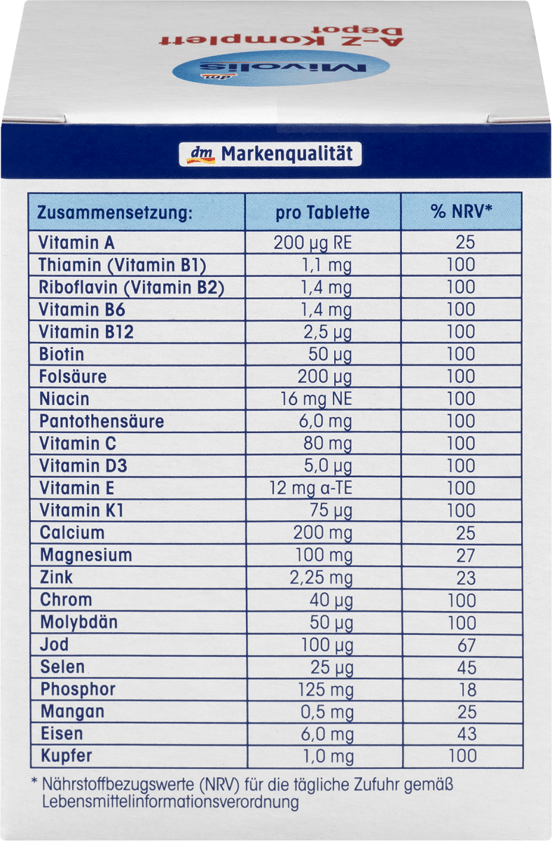 قرص مولتی ویتامین A-Z کامپلیت Mivolis حاوی تمامی ویتامین ها و مواد موردنیاز بدن در طول روز است و با تامین آن ها به شکل Depot می تواند در طول روز به سلامت عمومی بدن کمک بسزایی کند.