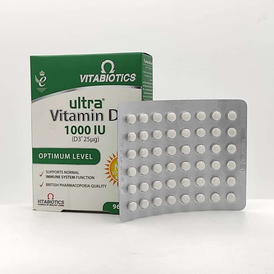 قرص اولترا ویتامین د۳ ویتابیوتیکس حاوی 1000 واحد ویتامین د3 است که مقدار مناسبی برای مصرف روزانه است.