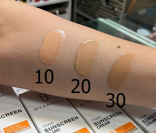 همچنین ضد آفتاب رنگی بیزانس SPF50 در سه رنگ بژ روشن، بژ طبیعی، بژ طلایی تولید شده است و به کمک قدرت پوشانندگی بالای خود میتواند به عنوان پایه آرایش نیز عمل کند.